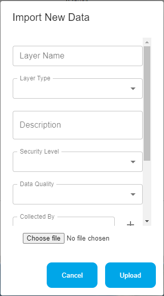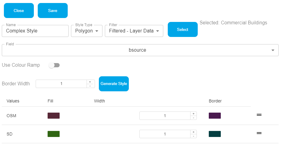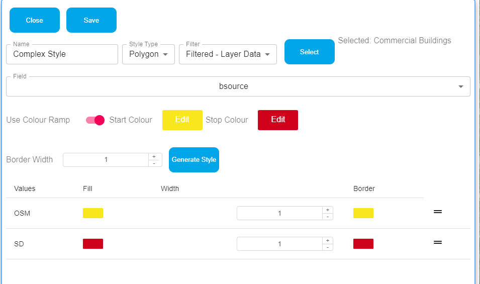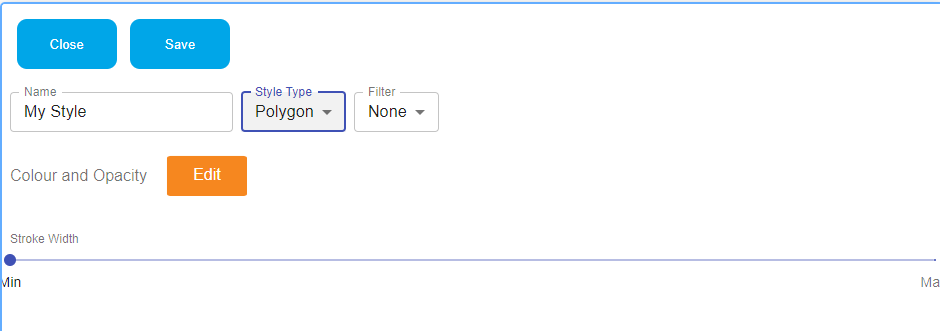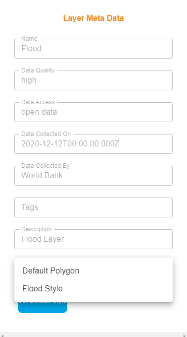 The Meta data editing UI functions almost exactly the same as the importer UI, with the addition of the spatial reference system for the Spatial Data (this identified during the upload process automatically. If the SRS code is zero, then this means that a reference system was not able to be identified, if order to publish the layer (and for it to be used elswhere in the app) you must provide a reference system that the layer uses. To improve performance it is advised that data is either uploaded in the Global Reference system, WGS 84 (SRS code 4326), or reprojected to this once it is in the data engine. Reprojecting a layer is a simple as selecting the required code from the drop down list and clicking update