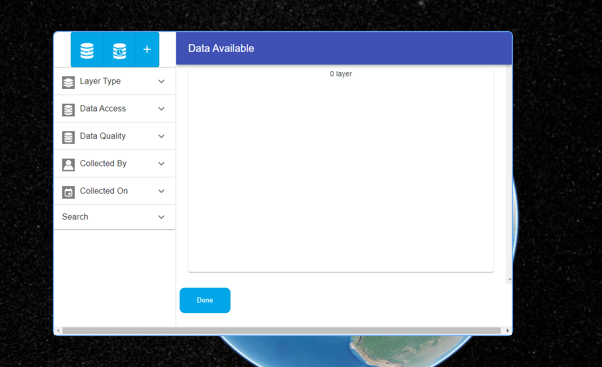 After importing a new layer it will be available in the "Data in Preparation" list. This can be shown via the middle button (With a clock symbol on it) in the top left button bar. Clicking on the unpublished layer will bring the Layer Editing and Preview UI. This is composed of a preview map (top left), a data grid showing the underlying spatial data, and a meta data view (left).